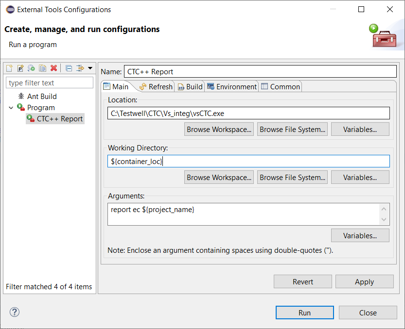 To generate the reports after a test run directly from Eclipse, an external tool configuration can be done. This configuration will be available for the entire workspace.