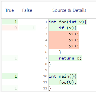 The function’s internal program flow is irrelevant for function coverage, hence it is a rather weak measure. As instrumentation mode, it is the most lightweight coverage measure.